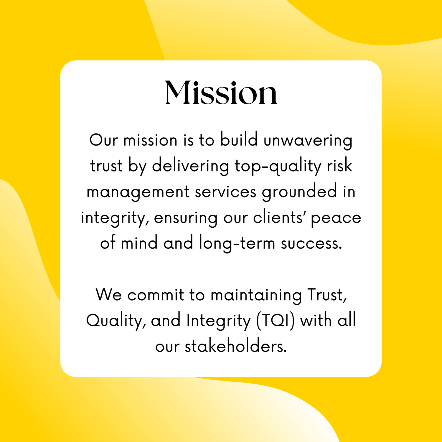 We commit to maintaining Trust, Quality, and Integrity (TQI) with all our stakeholders. Our objective is to provide the best possible solutions to our clients to manage risks and recommend the required suggestions.